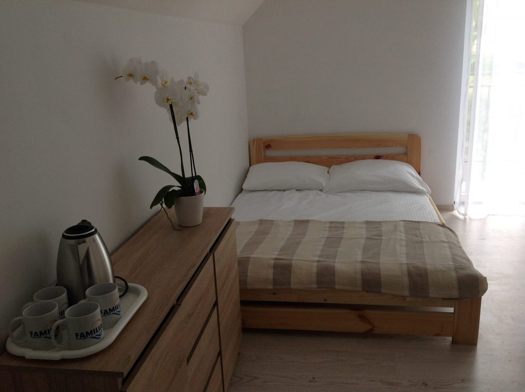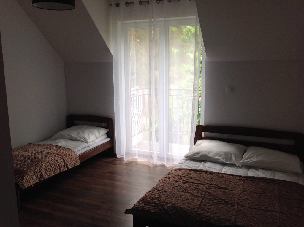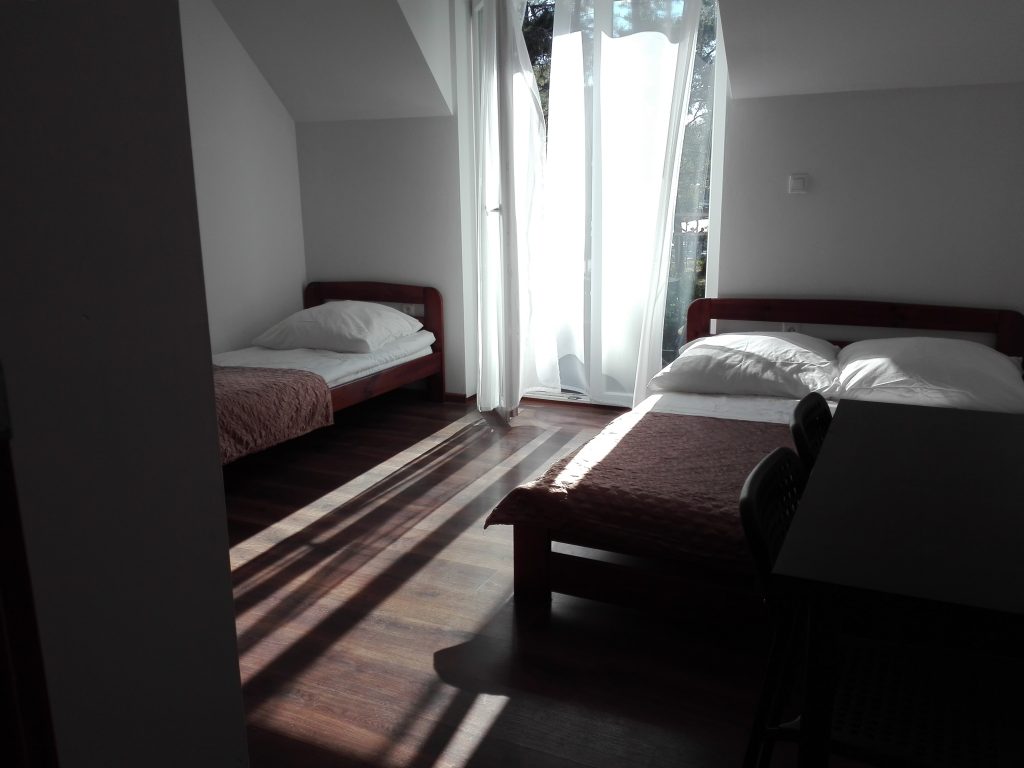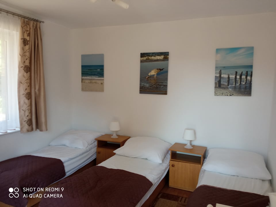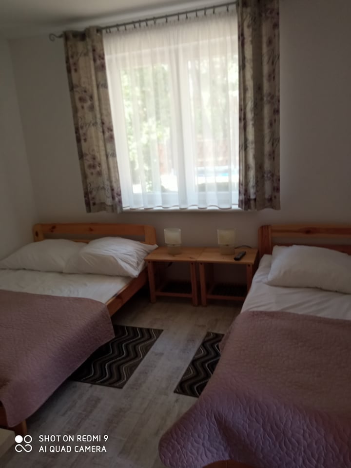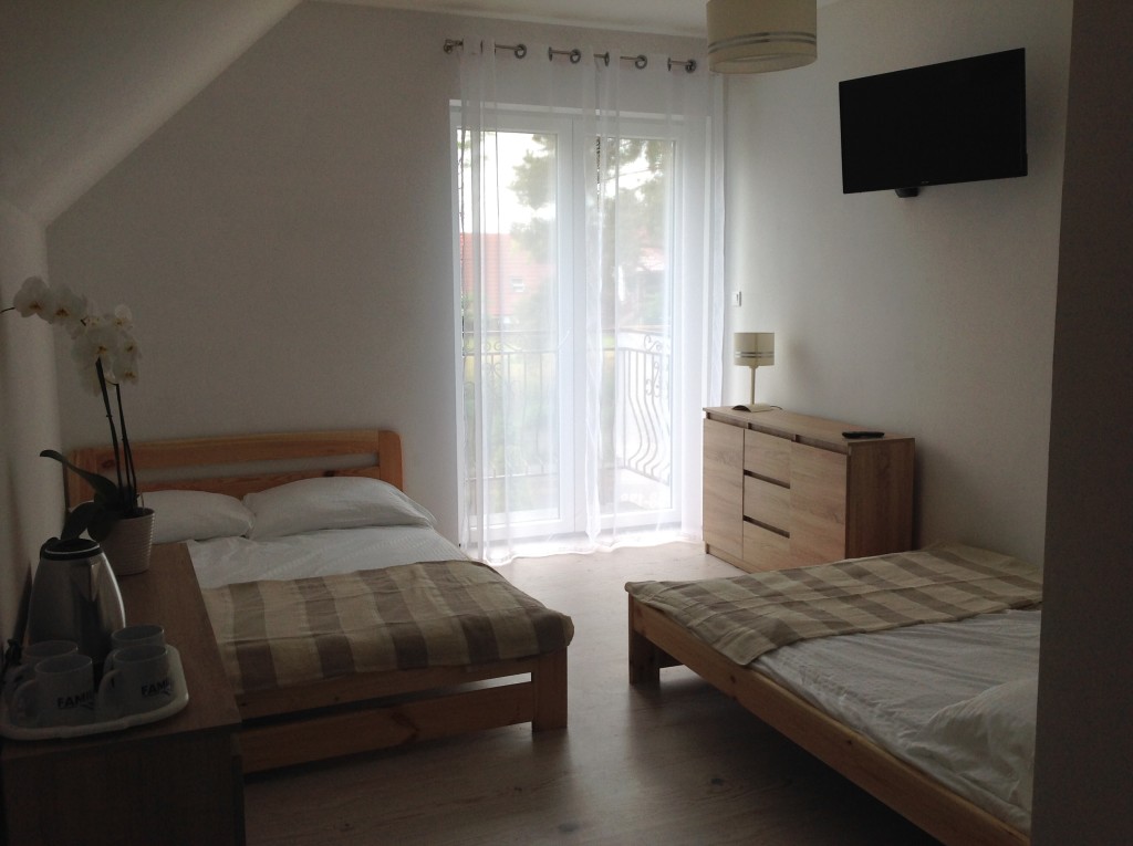Pokoje 2,3,4 osobowe na piętrze z balkonami plus jeden 2 osobowy bez balkonu. Pokoje wyposażone w telewizor, czajnik bezprzewodowy, łazienkę z prysznicem.