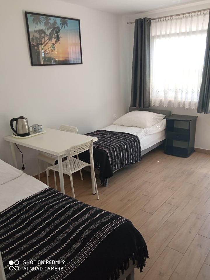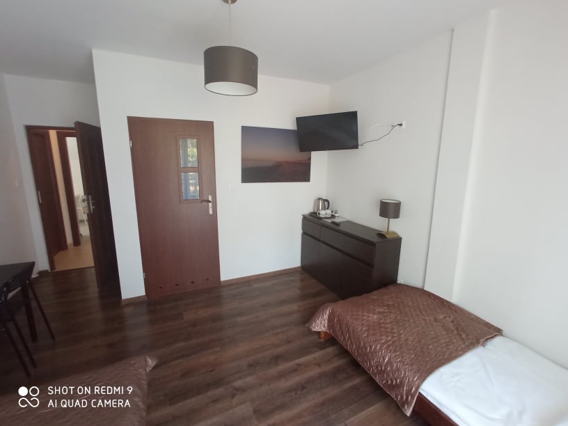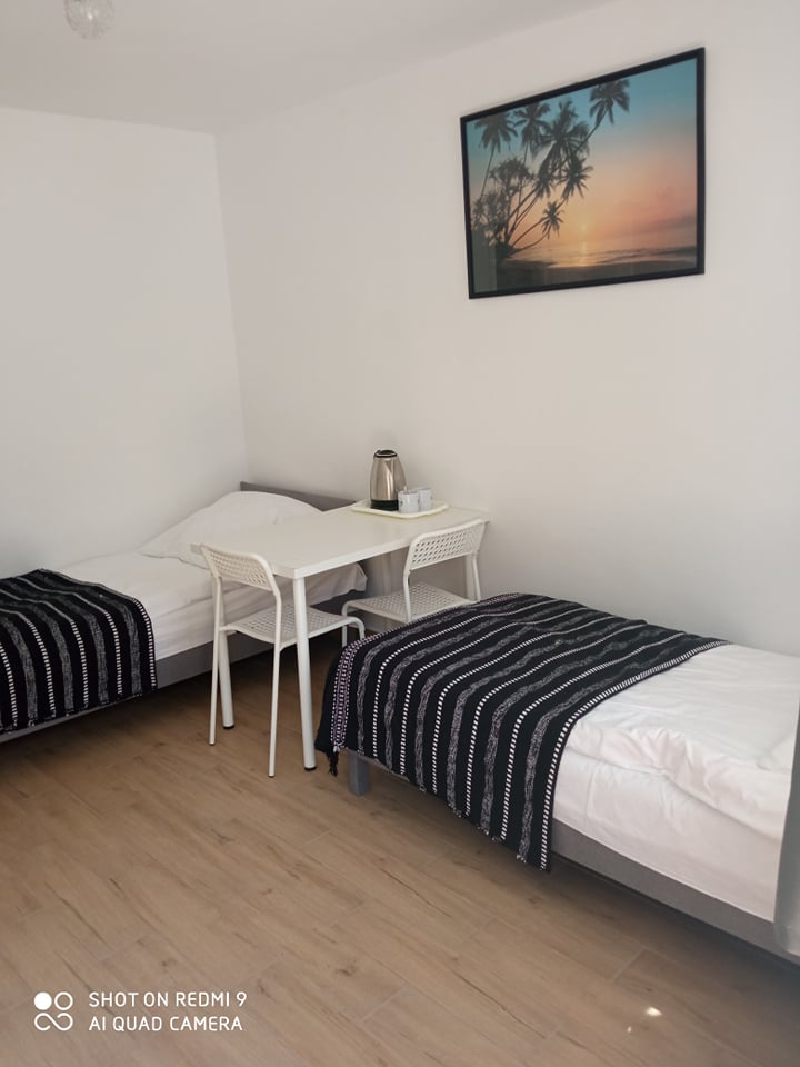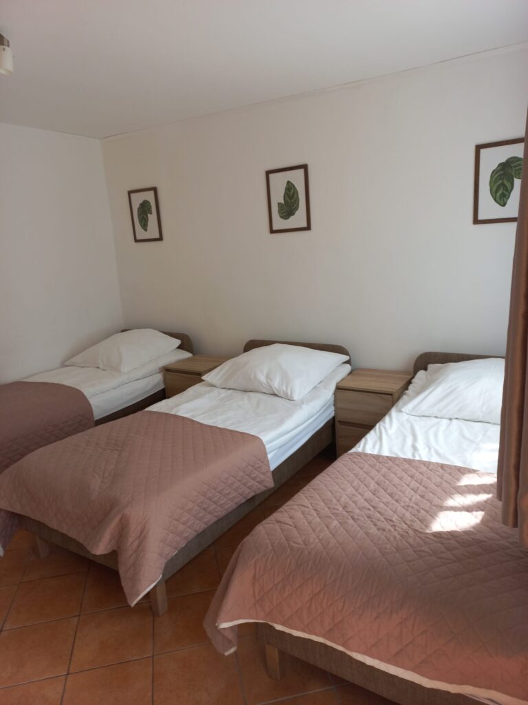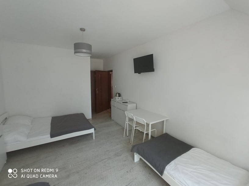 Pokoje zewnętrzne 3-4 osobowe, wyposażone w telewizor, czajnik bezprzewodowy, łazienkę z prysznicem.
